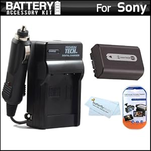 Kit Includes:♦ 1) Vidpro - Hi-Capacity Lithium Ion Battery For BP-FH50 1000 mAH ACD759♦ 2) Vidpro - Ac/Dc Rapid 110/220 Charger For Sony NP-FV, NP-FH Batteries♦ 3) Zeikos - Deluxe Universal 5" LCD Screen Protectors♦ 4) ButterflyPhoto - ButterflyPhoto Micro Fiber Cleaning Cloth